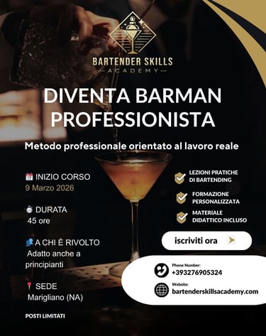 Corso Barman Base a Marigliano – Inizio 9 Marzo 2026